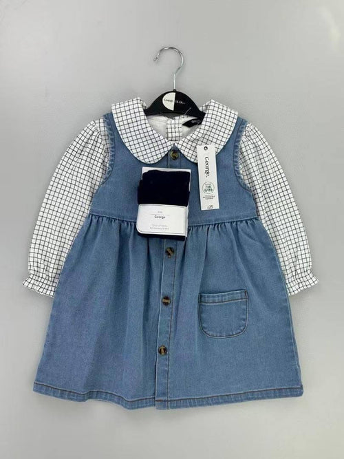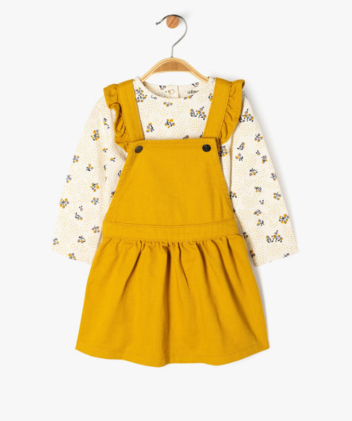 2-Piece Baby Girl Set – Yellow Pinafore Dress & Long-Sleeve Printed T-Shirt